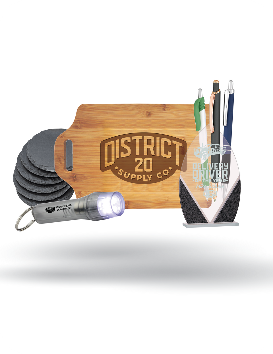 Boost your brand, event, and team visibility with our extensive selection of promotional products, ranging from stylish pens to practical cutting boards and everything in between. Stand out effortlessly as we equip you with the essentials needed to leave a lasting impression and make your mark in style.